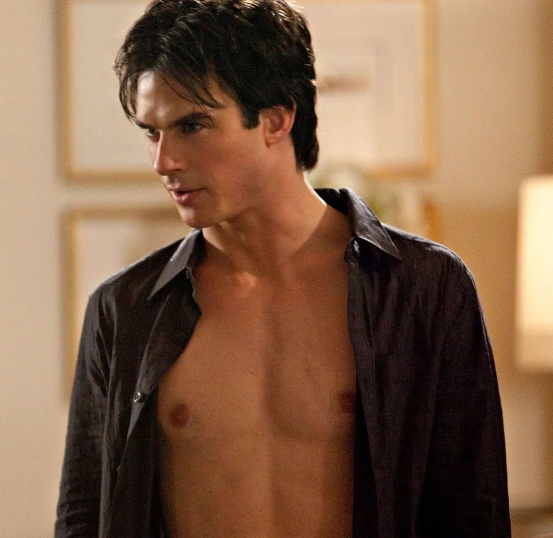 Damon in his early-30s, has light blue eyes and dark brown hair that hangs just over his ears, and is styled in a casual disarray. He is light complexed with olive undertones, and a good toned physique.