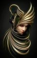 This may contain: a man and woman are dressed in black with red hair flowing over them, while the image appears to be blurry