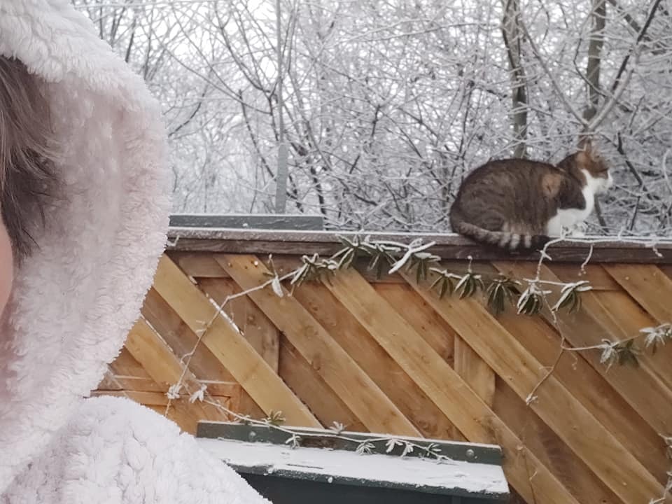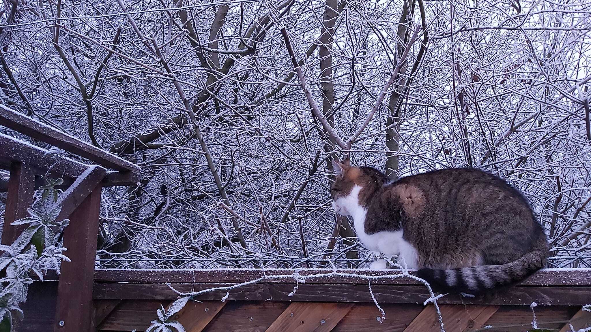 Bonjour CuppyAs-tu passé un bon week-end moi oui après une semaine enneigée ce dimanche fut sous la pluie très froide ça n’a pas empêché ma petite chatte d’aller faire son tour habituelAccolade amicaleChantal