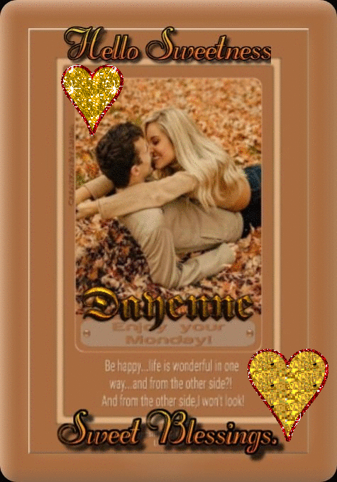 ❀༺☆༻ Hello༺☆༻❀ In autumn, every falling leaf Is a promise that beauty can be reborn at any moment. Have a wonderful week! ... May it be sprinkled with the sweetness of friendship and light. Take good care of yourself. Friendly thoughts... Kisses.